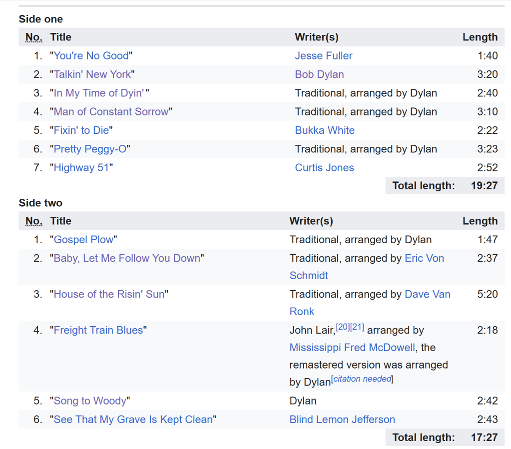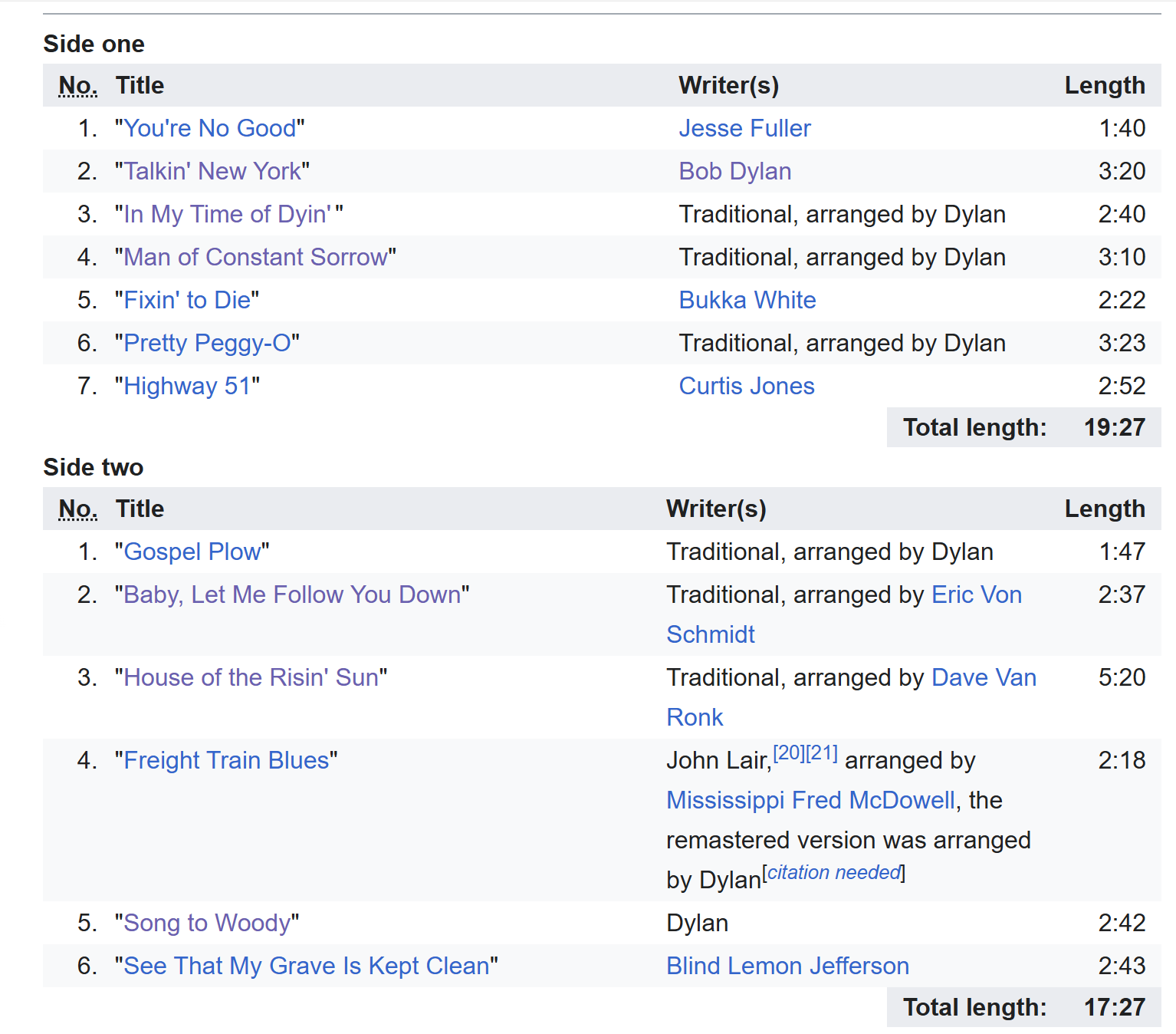 However, I have looked up the songs to see if Dylan wrote them himself, to read the lyrics and to do a bit of research about some of them.