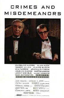215px-Crimes_and_misdemeanors2Crimes and Misdemeanours (1989) is Woody Allen’s greatest cinematic achievement. It brings together all of his key themes – religion, morality, family, guilt, the meaning and purpose of life – in a seemless way with great writing, a pitch-perfect soundtrack and wonderful performances by its ensemble cast. There are numerous plots and sub-plots, but the film principally revolves around Judah Rosenthal (a brilliant Martin Landau), a successful and wealthy ophthalmologist, who resorts to desperate measures to end an affair with Dolores Paley (equally brilliant Angelica Huston).  Despite the heavy material, it is also extremely funny with the humour provided by Allen himself an idealistic documentary film-maker Clifford Stern, given the opportunity to make a documentary about his brother-in-law Lester (Alan Alda), an obnoxious big-time television producer. He does it so that he can earn enough money to make a documentary about a life-affirming jewish professor, Louis Levy, all the while falling in love with Lester’s associate producer Halley Reed (Mia Farrow).