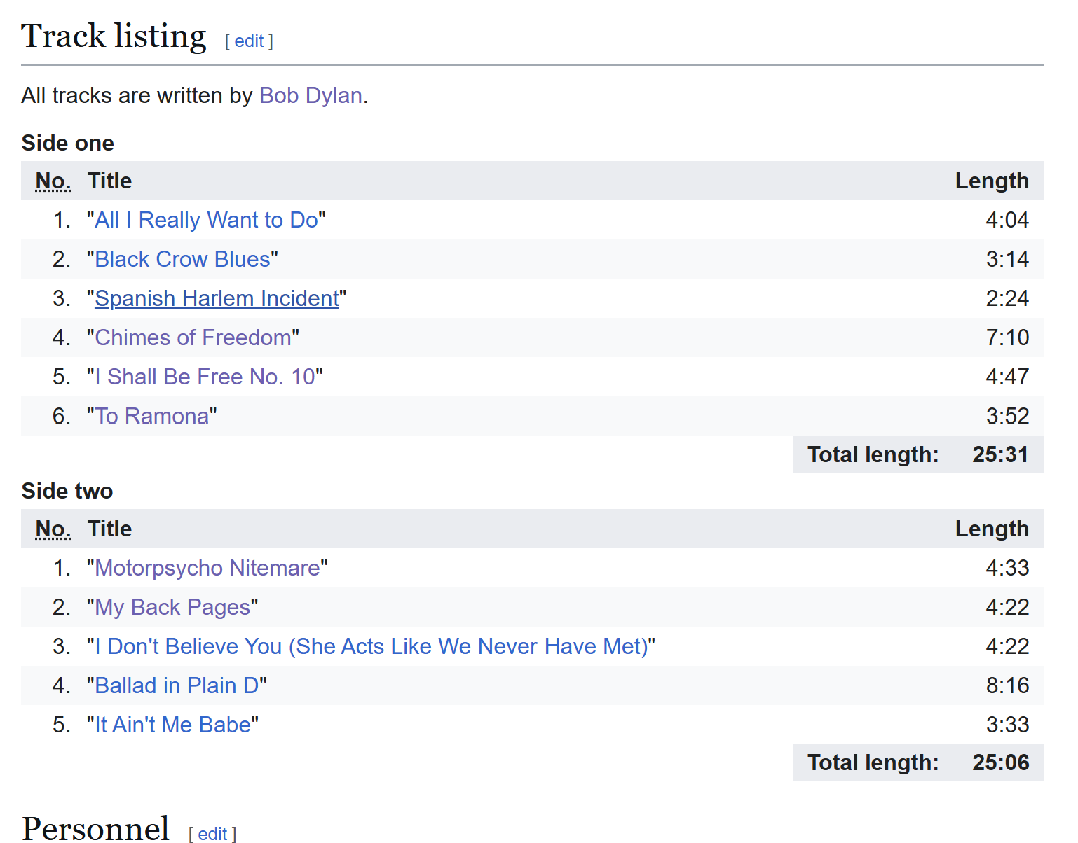 If I could choose just one track: My Back Pages