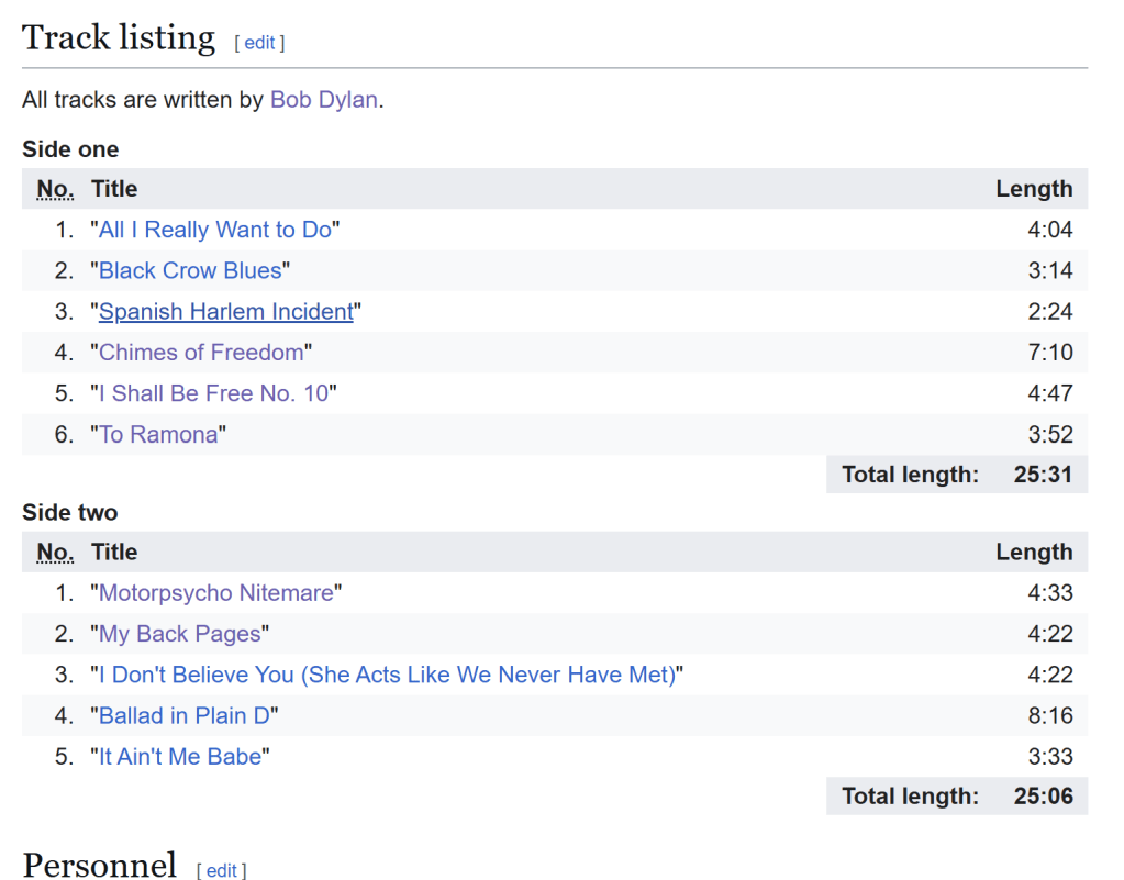 On “Another Side of Bob Dylan”, there are a bunch of hidden gems, in addition to a number of classics I already knew well.